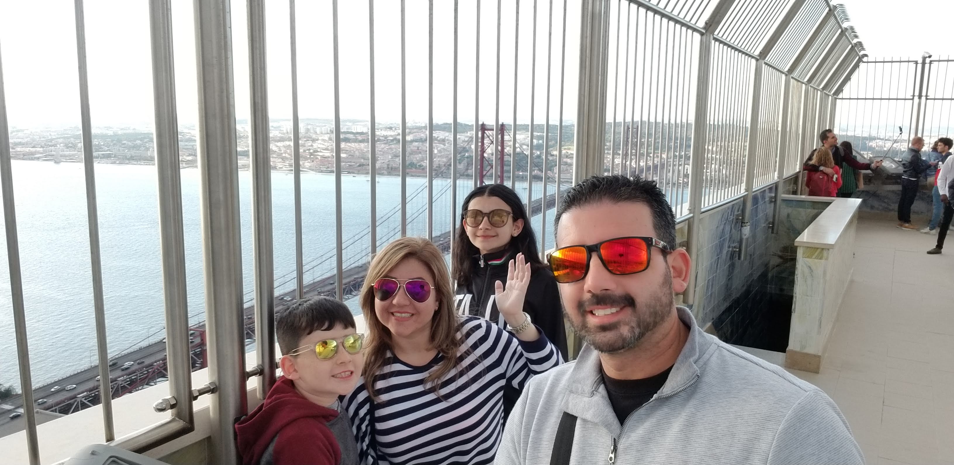 En la tarde, nos dirigimos al Santuario Nacional de Cristo Rey. Para llegar, hay varias opciones pero recomendamos Uber o Taxi ya que es mucho más rápido. Sus horarios son desde las 9:30 am a 6:30 pm. El monumento está en la cima de una montaña en la orilla sur del Río Tajo, fue inspirada en el Cristo Redentor de Brasil y construida en agradecimiento a Dios por proteger a Portugal de los estragos de la segunda guerra mundial. La vista es espectacular desde el tope, estuvimos un par de horas en el área. El subir es bastante cómodo, la mayor parte es en elevador y una vez arriba hay algunos escalones. El costo por subir es de 5€ adultos y 2€ niños.